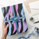 Snyggt papper med abstrakt zebra tryck mönster i svart, blå, violett och rosa färg, av min ursprungliga akrylmålning.