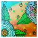 Min färgglada abstrakta blå blommor målning tryckt på keramiska plattor