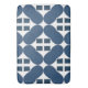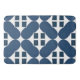 Abstrakt sömlöst mönster med djärva blå geometriska former på en vit bakgrund. Lämplig för moderna designprojekt, digitala bakgrunder eller kreativa textilmönster. Frammanar sofistikering och samtida estetik.