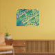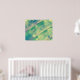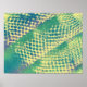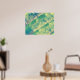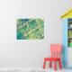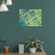 Målning av abstrakta diamantformer i blått, grönt och lila, på en gul bakgrund är tryckt på affischer.