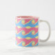 Modern mugg med gula, rosa och ljusblå abstrakta vågor. Livet händer i vågor! Njut av det!