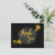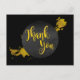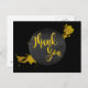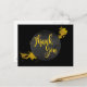 Ett vackert guld brev som säger tack på ett svart, randigt linjer-postkort är mycket elegant och klassiskt att tacka era gäster.