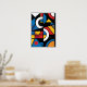 Dramatisk och fet cubist-teckning i stil har fet linjer, pulserande färg-geometriska former i rött, gult, blått, svart och vitt. Underbar grafik för ett kontor, ett sovrum eller var som helst som du vill ha fet färg och och abstrakt.