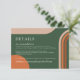 Modern boho bröllop-hölje innehåller detaljkort med bågformer i terracotta, rost, bränd orange och mörk grönt, smaragdtoner. Samling: https://www.zazzle.com/collections/boho_arch_abstract_wedding_collection-119061662657911589