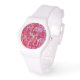 En rosa av konst, vit, gult av krabbor/hummerprickar på hamnbryggan.