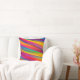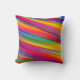 Kvadratisk polyesterkudde med abstrakt konst - färgstarka övertoningar i ljusa gulter, orange, rött, lila, blått och grönt.