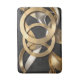 Den här abstrakten av elegant har en slimmad svart bakgrund som skapar rörelsekänsla och modern sofistikering och som är sammanvävd med gyllene och silver ringar. Perfekt för väggkonst, hemmabruk och gåvor till dem som uppskattar geometrisk design och lyxt stil.