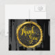 Ett vackert guld brev som säger tack på ett svartvitt postkort är mycket elegant och klassiskt att tacka dina gäster.
