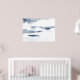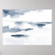 Poster abstraktens originalvattenfärgsmålning i skiktblått och vitt.