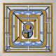 En abstrakt, geometrisk bild av en uggla, rik i Art Deco stil med ett harmoniskt blått och guld färg-system.