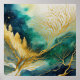 Abstrakten Vattenfärg liggande målning. Färgdetaljer för blå Grönt i Guld Bildrutefrekvensen är 1:1. Det var designat att skriva ut som 12 x 12 16 x 16 20 x 20 24 x 24