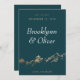 Det här spara datum meddelande-kortet har en abstrakt som är målad i ett berg i Faux guld. Par namn markeras med ett stort och elegant typsnitt för en sofistikerad känsla. Faux-guld-folien lägger till en perfekt painterly touch som skapar att spara datum meddelande verkligen står ut från folkmassan. Den mörk grönt bakgrunden kan anpassas så att den stämmer överens med bröllop färg. På baksidan av kortet finns ett ställe som ska inkludera en bröllop webbplats adress.