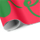 Den här festomslutningen pappra visar böjd linjer och former i grönt på ett rött yta.