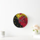Lägg till en contemporary stänk i en tom eller färglös vägg. Den här abstrakta designen har ojämna geometriska former i rött, gult och guld och bara fem av tolv siffror över en svart bakgrund. En bra ersättning för en gåva till husuppvärmning.