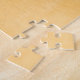 En svart triangel indelad i segment, ett svart trapezoidalt band indelat i två, en röd cirkel, en rektangel med gult, en röd kvadrat med blek, en lila cirkel och en fyrkantig orange i denna abstrakt av överlappande former av Richard H. Fay.