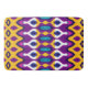 Ett sömlöst mönster med enkla, symmetriska former i lila, gult och blått