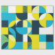 Abstraktens geometriska bakgrund med kvadrater, trianglar, rundor och kor en 3D-effekt. Färgfull modern mönster