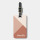 Modern bagagetagg med geometriska former i terracotta och kräm och ditt eget namn eller text i ett retroteckensnitt.