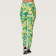 Abstraktens Grönt och Gult Vattenfärgsfärgsfärg Fä Leggings