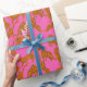 Abstrakt-modiga leoparder med rött läppar och inkomster i fuchsisk rosa-bakgrund