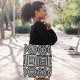 abstraktens kvadratiska cirklar upprepar mönster, vilket gör det ännu mer lockande. Prova med den här väskan och din feedback.