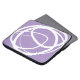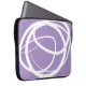 En abstrakt teckning som består av en cirkulär vit linje i rörelse kor, ljusviolett yta i denna elektronikpåse.