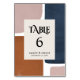 Abstraktens rost, flottan + rosans moderna contemporary bröllop-bordsnummer. Grafisk handmålad design. Skripttext och fet typografi.