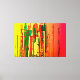 Abstraktes Bild Acryl Gemälde auf Leinwand gedruckt, mit Streifen und Farbklecksen in rot, grün, gelb, orange.