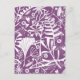 Söt blommigt botaniska silhuetter av naturen, vit lövning, löv och blommor på lila.