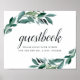 Designat för att matcha vår samling av överflödig Foliage bröllop, det här eleganten botaniska tecknet inbjudningskort gäster att skriva på gästboken. Anpassa med två linjer anpassningsbar text i kalligrafi och traditionell serif-skrift (visas med "Guestbook"; lämna önskemål för den nya Mr. och Mrs. [namn]"), framtagen med lush-vattenfärgsgreer och eukalyptus löv.