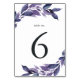 Elegantens botaniska bordsnummer-kort har sprayning av vibrerande blått och lila botaniskt löv runt bordsnumret. Utformningen upprepas på baksidan. Koordinerar vår samling av överflödiga Foliage Violet-händelser.