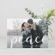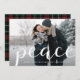 Med ett enkelt och elegant helgdag-fotokort kan du spela in fotot i mitten. Chicens design har ett utfallsorienterat vågrät eller ett landskapsinriktat foto, där "fred" överläggs med vitt skript. Anpassa till namn eller till namn och året. Kort som går tillbaka till ett vinterrött och grönt tartan plaid mönster.