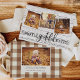 Thanksgivingen Rustic chic har tre fyrkantiga foton i en kollagelayout på en ljusa träplank med "tacksam, tacksam, välsignad" utmed grund i svart skrift. Anpassa med namn, året och ett Julhälsningar (visas med "Happy thanksgiving") och lägg till ytterligare ett foto och ett personligt meddelande på baksidan om du vill.