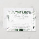 Elegant botaniska bröllop OSA med luxuriös vattenfärgsmörjning som gränsar till kortet med vit bakgrund. Anpassa de moderna gröna bröllopen OSA med ditt svarsdatum, anpassningsbarna accepterar/avvisar formuleringar och måltider. Designad att samordna med vår samling i Abundant Greenery bröllop.