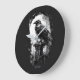 Keep watch over time with the "Abyssal Gaze" gothic wall clock. This striking black and white design features a powerful raven perched atop a mystical pedestal, complete with an all-seeing eye occult symbol. Rendered in a high-contrast grunge ink-splatter and esoteric geometric aesthetic with unique trash polka styling. This edgy and artistic wall clock is the perfect statement piece for gothic living rooms, alternative home offices, or gamer dens. An exceptional and creepy cool gift for raven lovers, esoteric collectors, or fans of dark fantasy art.
