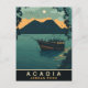 Fiskefartyg i Acadias nationalpark, Harbour Jordan Pond, berget. Öde, Maine. vykort för vintage resor