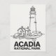 Acadia National Park Lighthouse Line Art Vykort