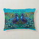 Blue and green cushion with peacocks. Proud feathery friends make a statement. Blue and green bight and bold. Add a splash of colour to your decor. Personalise with any message. Place in your favorite place.