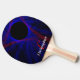 Enjoy the game of ping pong with this custom accented triangle geometric paddle. This product features a modern red and blue color design with personalized text. Pair with the in-kind series designed ping pong table.
