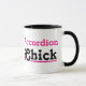 Det här vita mugg med ett svart handtag för snyggt och insida innehåller frasen "Chick för dragspel" i en roligt med fet stil och med accenter för magenta. Det är designat för kvinnliga dragentusiaster som vill börja sin dag på hög nivå eller ha en mysigt dryckesrast. Mugg är en underbar gåva till musiker, musiklärare eller alla som kärlek är dragspelets unika ljud.