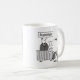 Min tecknad kommer kanske att uppskattas av alla som arbetar med bokföring eller ekonomi. Bilden visar en revisor som förvånas över att en kund kommer in på hans kontor med en gigantisk sparbank. Den svarta och vita tecknaden visas på båda sidor om mugg.