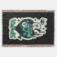 Ett ansikte byggt för slipning med attityd: en spade silhouette morfer i ett drippy-skalle, halftone tunga och taggiga "tänder", inramad av stjärnsprängningar, en varningstriangel och ett gråtande öga. Dotone-teal-on-black-paletten och katakana-headline är slå som en dekal-märkre - högljudd från hela filten, lagrad med detaljer som ligger nära varandra. Det är jämlika delar tur och hot, perfekt för turnémördare, pengarar-spelregler och kort älskare som leker med kant.