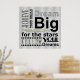 Fyra inspirerande ord för att aldrig ge ska nå dina mål/drömmar. "Drömmen", "uppnå", "nå" och "följa" ges några extra-pizazz.