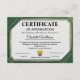 Achievement Appreciate Gold Green Certificate Tilläggskort