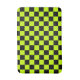 A vibrant checkerboard pattern with alternating neon yellow and black squares creates a striking geometric design, conveying a bold and energetic tone.