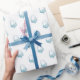 Acorn illustrerade papper förpackning. Enkelt blått akorn teckning på vit bakgrund, en klassisk modern land-design. Perfekt för födelsedagar eller särskilda tillfällen.
