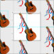 En illustration av en akustisk basgitarr med rött, vitt och blått rosett band. En patriotisk design, inspirerad av amerikansk musik. Guitarren är målad i realistiska, varma trätoner.