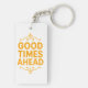 Keep positive vibes close with this "GOOD TIMES AHEAD" acrylic keychain. Double-sided and rectangular. Perfect for keys, bags, or as a gift. Easily personalize by adding your own custom text, names, dates, or photos! Great for daily inspiration.