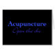 "Acupuncture - Open the chi" är perfekten påstående för din träning! Perfekt till ditt behandlingsrum! Se till att medarbetarna har bära på kontoret, sätt den på dina rackkort, affärskort eller på de vykort som vi har för dina brevbärare! Lägg till en egen text, välj färg i bakgrunden.