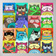 En söt uppsättning av hand plockade doodle pet cat porträtt som bildar en mosaikbakgrund.